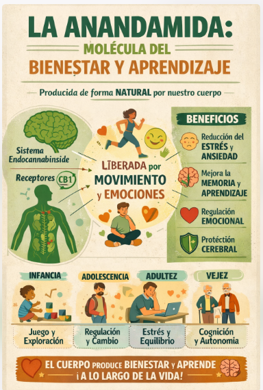 Reconocer el papel de la anandamida transforma la manera en que se conciben la salud, el aprendizaje y el cuidado a lo largo del ciclo vital. En la infancia, favorece la exploración y la motivación intrínseca; en la adolescencia, acompaña la regulación emocional y la reorganización cerebral; en la adultez, actúa como un amortiguador frente al estrés y el sedentarismo; y en la vejez, contribuye a sostener la autonomía, la identidad y la reserva cognitiva. En todas estas etapas, el cuerpo emerge como protagonista del aprendizaje y no como un mero soporte del cerebro.