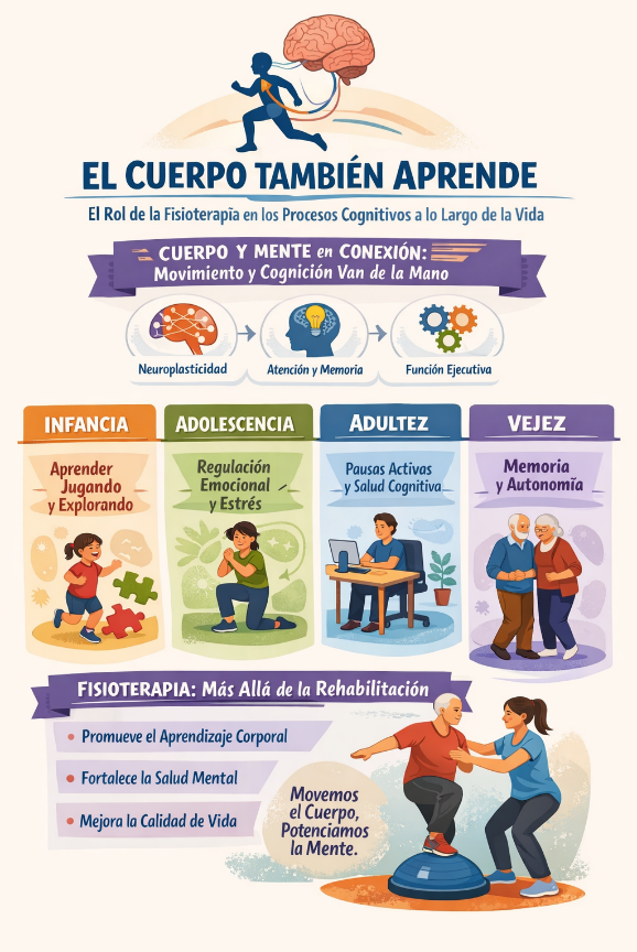 Este artículo propone una mirada transversal del rol de la fisioterapia en los procesos cognitivos desde la infancia hasta la vejez, integrando evidencia científica y estrategias específicas para cada etapa del desarrollo humano.